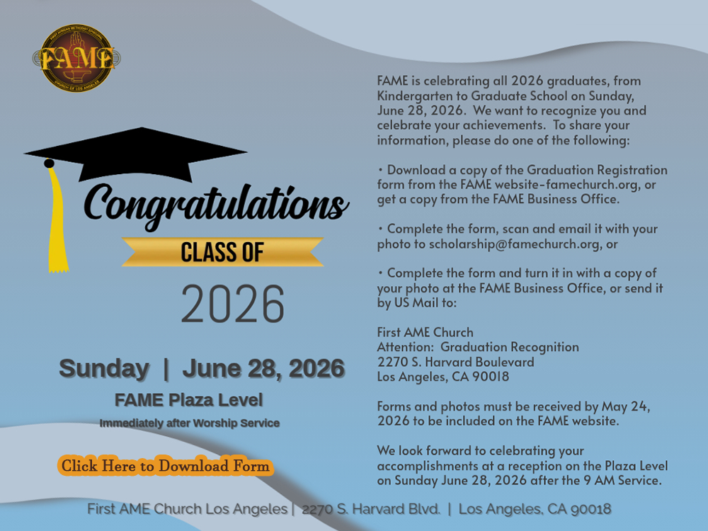 Click Here To Join FAME Now!!! Click here to view this week’s bulletin and Order of Service Pictures of the Week Click here for Flickr link to pictures from Jesse Jackson Tribute Join our Lay Organization Fsonline